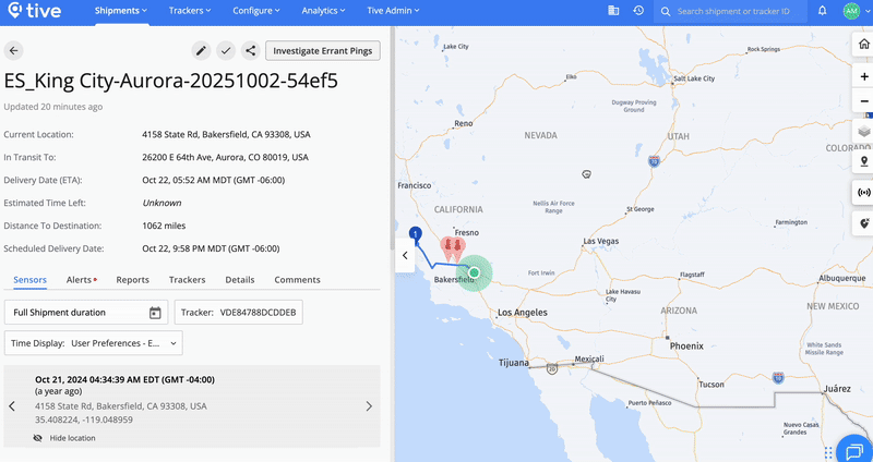 Une visibilité qui dure tout au long du trajet. Équilibrez les détails du trajet avec l'autonomie de la batterie en contrôlant la fréquence à laquelle les traceurs transmettent leurs rapports à la plateforme Tive, afin que vous disposiez des bonnes informations, au moment où vous en avez besoin.