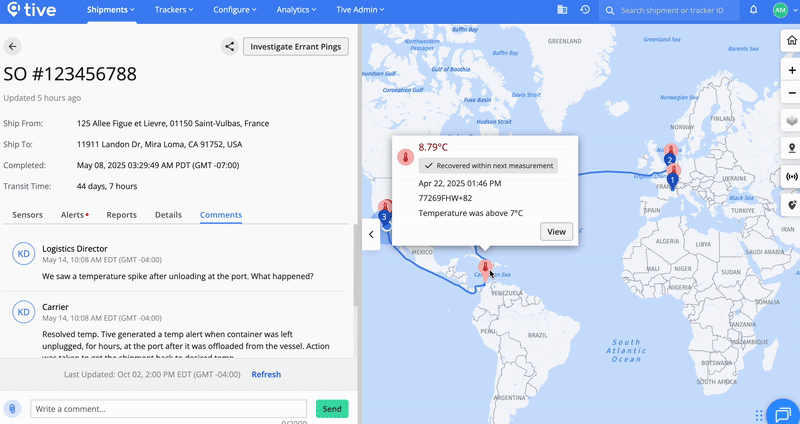 Ne te fais plus jamais prendre au dépourvu. Sachez exactement quand les envois sont entrants, retardés ou interrompus trop longtemps grâce à des alertes géolocalisées.