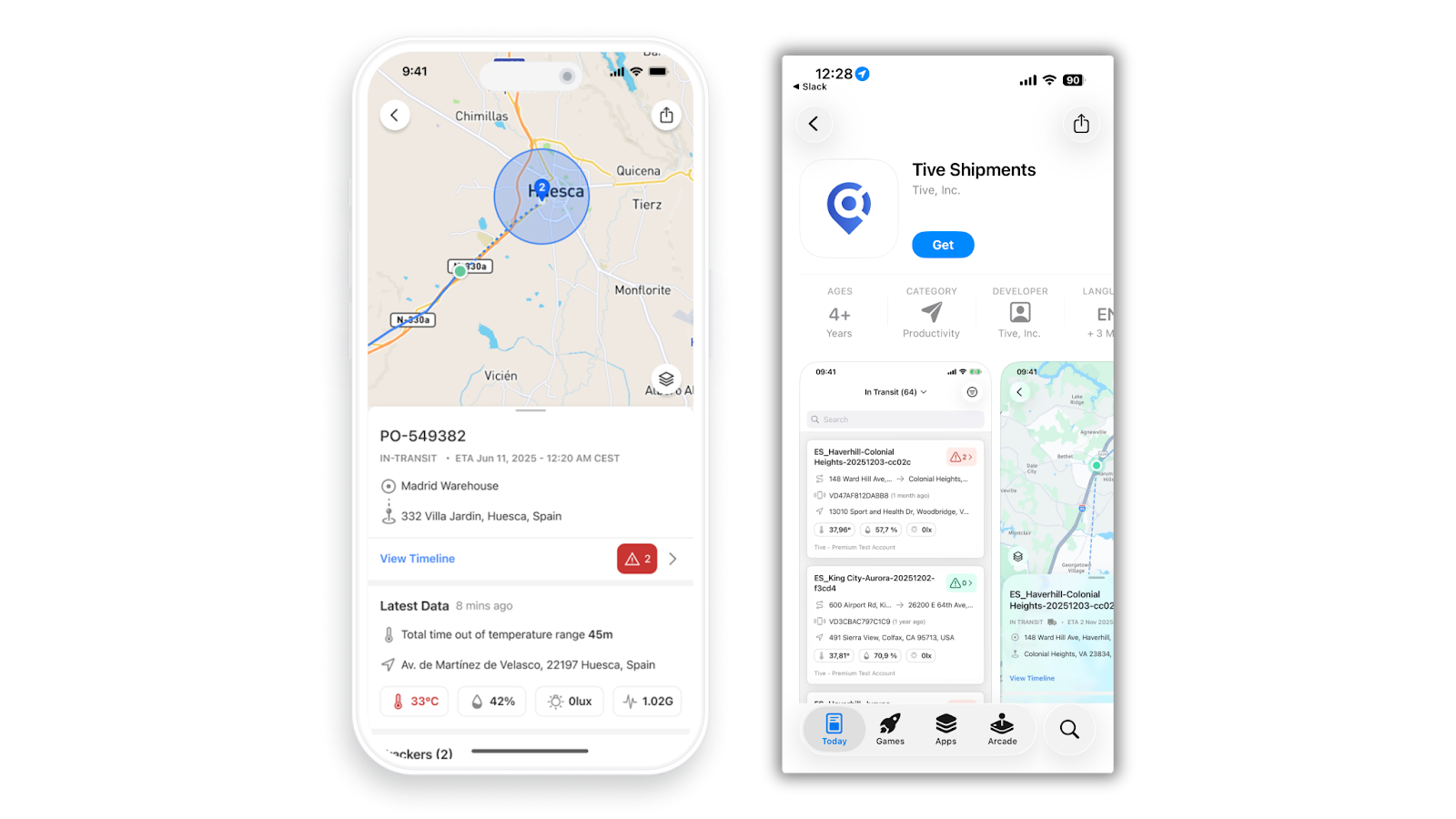 The Tive mobile app here! Teams can track shipment location and conditions in real time, review alerts, and quickly access key details right from their phones. Whether you’re on the floor, on the road, or away from your desk, the app keeps you connected and able to act fast when something needs attention. Download the Tive app on Apple iOS or Android to get started today.