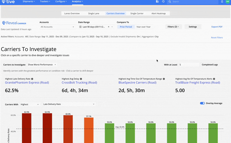Reveal is Tive’s new analytics tool that turns shipment data into trusted insights—so you can reduce risk, cut avoidable costs, and keep improving how your network performs. Reveal helps you uncover shipment trends, benchmark routes and lanes against the broader Tive Network, and find where performance gaps are costing you the most. The current version focuses on cold chain compliance and temperature performance insights, helping you prevent delays, spoilage, and claims before they add up.